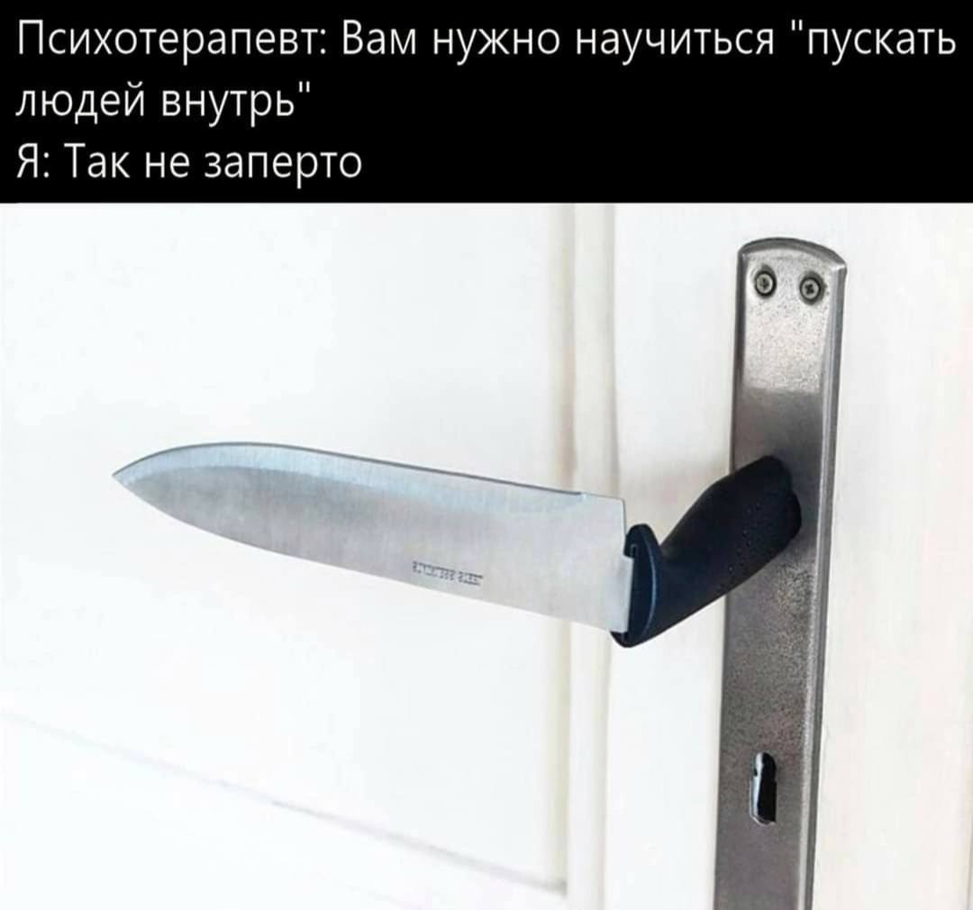 Она: в отношениях со мной для тебя откроются новые двери. Те самые двери, которые для меня открылись: кабинет врача-психиатра