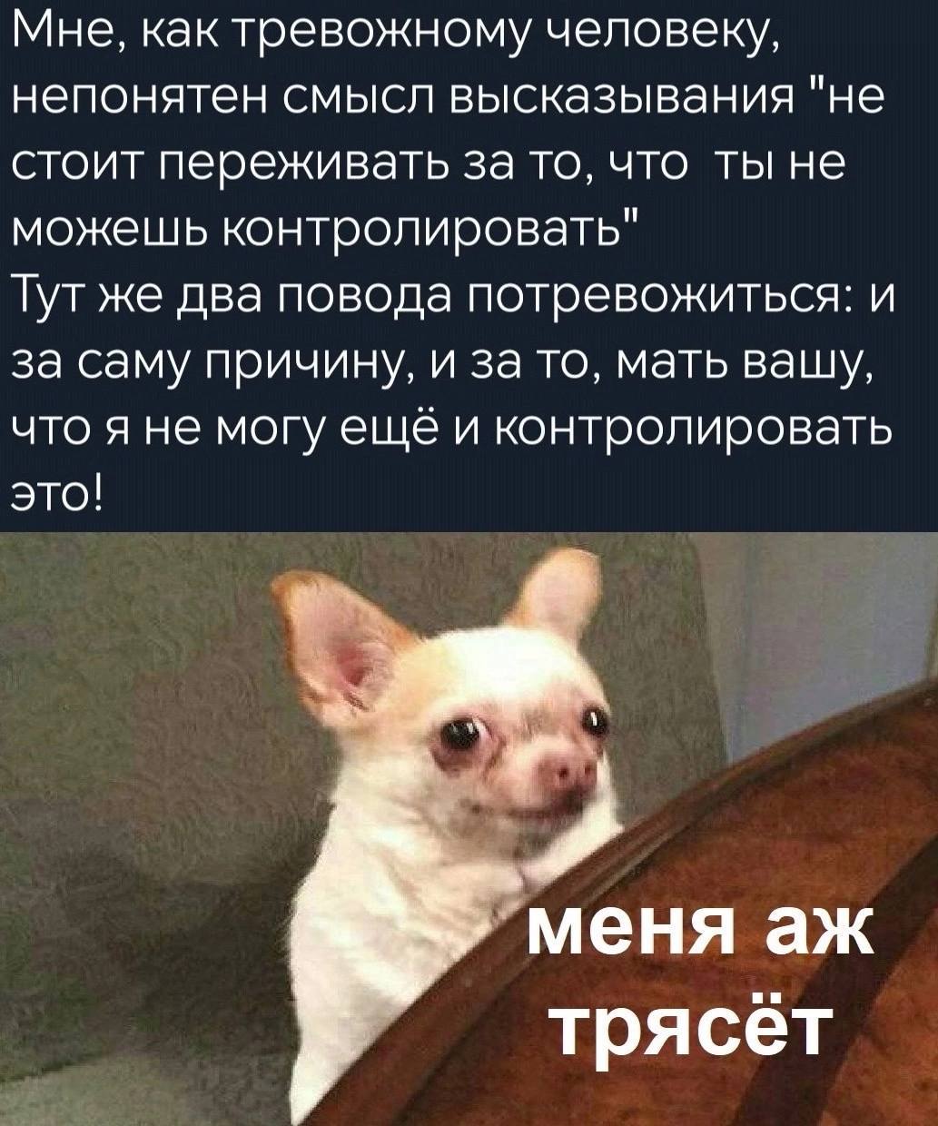 Когда психотерапевт говорит тебе, что у тебя тревожность и нарциссизм, вместо того, чтобы отметить твое потрясающее чувство юмора и загадочную ауру. Я не пон за это еще и 5 тысяч отдать?