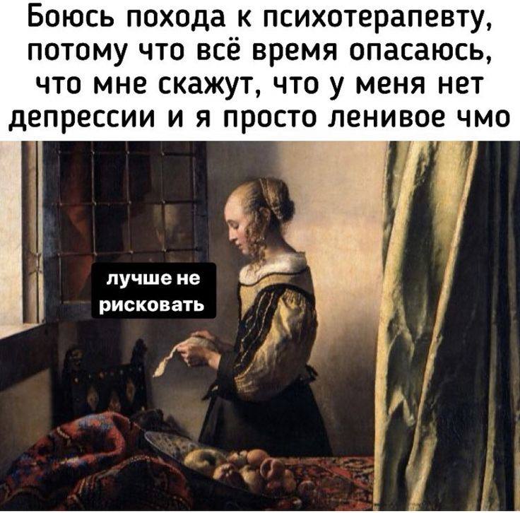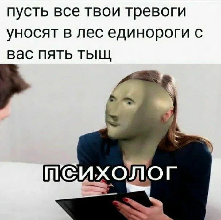 Когда психотерапевт говорит тебе, что у тебя тревожность и нарциссизм, вместо того, чтобы отметить твое потрясающее чувство юмора и загадочную ауру. Я не пон за это еще и 5 тысяч отдать?